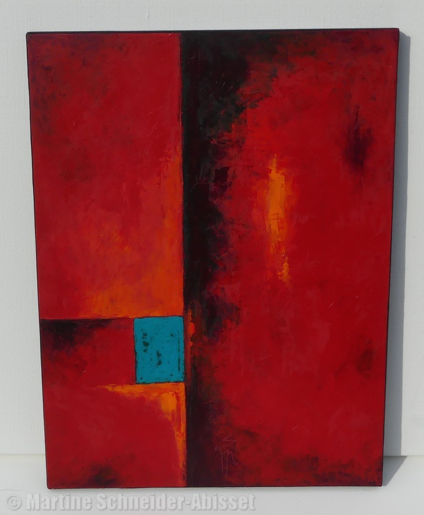 Fenetre bleue sur fond rouge - carton toilé - 30x40