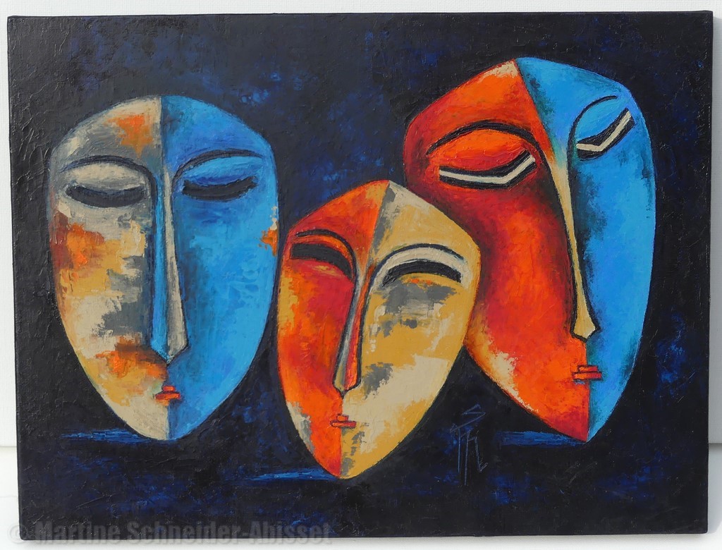 Trois masques - carton toilé - 30x40