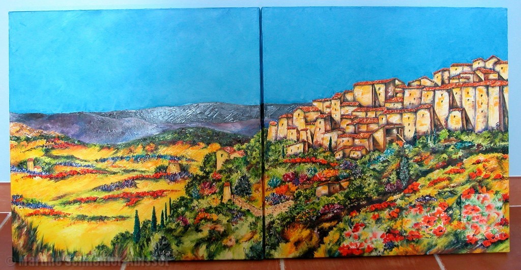 Dyptique Carré village provencal - 100x50