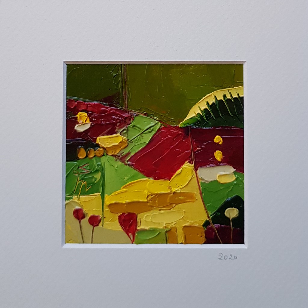 Huile au couteau sur papier toilé 8cmx8cmFixé sur passe-partout 14cm x 14xmVendu non encadré (compatible format standard de cadre)Original signé - Exemplaire unique