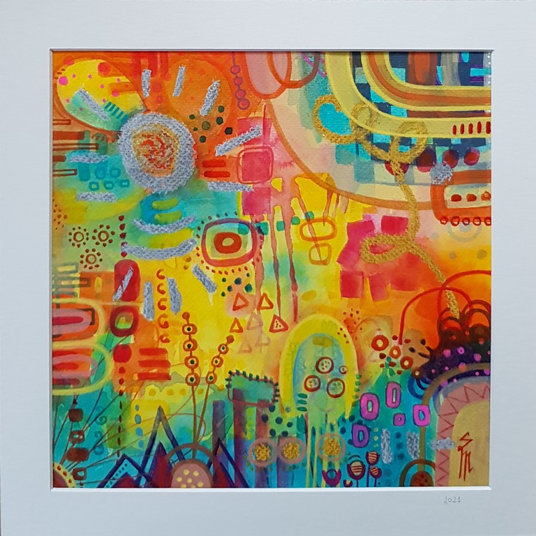 Mixmédia (Acrylique, Pastel gras, Graphite, Poscas, Néocolor) sur papier 25cm x 25cmFixé sur passe-partout 30cm x 30cmVendu non encadré (compatible format standard de cadre)Original signé - Exemplaire unique