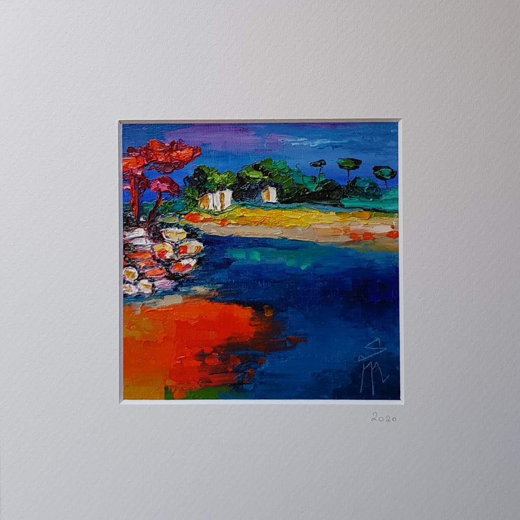 Huile au couteau sur papier toilé 10,5cmx10,5cm